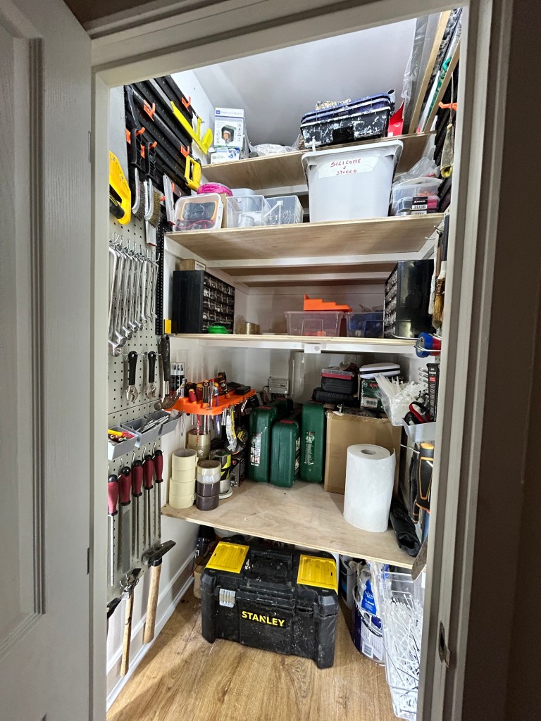 最近我和R爸还干了件大事儿,为什么没有R呢,因为那个人工作忙,根本没上手帮我们什么。我把楼上的一个储藏室空出来了,然后和R爸把楼下储藏室里R的各种工具,油漆什么搬到楼上储藏室了,买了很多分类的盒子和板,安了感应的灯带,终于把R的东西全部规整到一个地方了。看看能保持多久吧。R爸说了,R要是再乱丢东西,就让我喊他立马放储藏室去,如果不听就给R爸打电话。