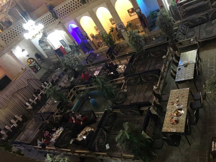 在莫克清真寺我们遇到了昨天在那个满是玻璃的shrine见到的一个长老,就是什叶派的一个宗教学者,他的工作就是研究传播古兰经。他会说汉语,而且坚持只说汉语来练习。当时他给我们宣传教义的时候,具体讲的什么我已经忘了,反正大概就是女人包头巾的好处,就是女人包头巾只给自己的男人看,男人只看自己的老婆,不看别的女人,有利于促进家庭和谐。据他说这就是古兰经的好处,因为是古兰经规定了女人要包头巾。所以由此推之古兰经的规定都是有道理的,等等。我其实对宗教还是挺感兴趣的,因为我自己是在无神理论下长大的,世界观已经形成,不可能在信什么神了,但是我对宗教和历史的关系非常感兴趣,如果他好好讲一下我会认真听的,但是他以上那样的布道方式确实是我不能真的接受的。现实中不管是经书里或者其他的道德规范的存在,和人们是否遵守它没有自然联系。当然理想社会下,大家都遵从一本道德行为规范,大家都是好人,这当然好,但是人是有贪欲的,而且有好奇心,所以单凭一本书规范不住。即使一本书可以规范住,那只要是真善美的书就好,也不一定非得是古兰经。之前在比利时时,一个香港的女孩给我传教,传基督教,但是他们的教会不是在大教堂,而是一个比较偏的地方,应该是基督教的什么分支之类的。我本着学习的态度本来想对宗教多点了解,可是后来聊着聊着就有些压迫性地让我入教,只要聊天就往上面扯。某天她问我:你不相信上帝的存在,可是你知道天为什么是蓝的呢?我反问她:你觉得为什么呢?她说:那是因为上帝让它变蓝的。我说:天空呈现蓝色是因为光的反射折射之类的原理,跟上帝没关系。她接着说:那为什么蓝的的这么漂亮呢?是上帝让它蓝的这么漂亮的。然后我就把她拉黑了。我其实并不介意别人拿科学不能解释的事物来佐证上帝的存在,但是这么无知地证明神的存在,神也会生气吧。