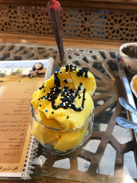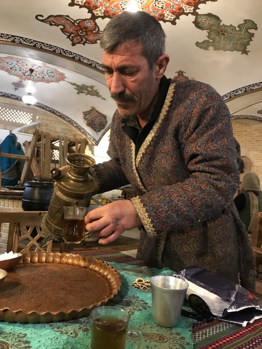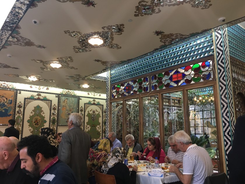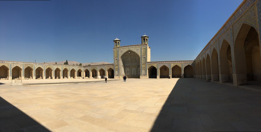 从清真寺出来后,回酒店checkout,然后我们就去波斯波利斯了。波斯波利斯规定必须要里面的导游来带队。我已经不记得导游的名字了,她英语聊天还不错,可是一讲解起景点就属于背书式的英语,我听着很费力。还好我们自己的导游一直全程陪着,不顾另外那个导游是不是生气,坚持给我们讲解。我们到的时候已经中午了,不知道为什么导游把车停的特别远,到了波斯波利斯门口他又忘了什么回车里去拿,之后好不容易把人凑齐,还加上他带的另外一对台湾夫妻一起。波斯波利斯的女导游先介绍了一遍,我们听的似懂非懂。我们自己逛了一圈,我们的导游又过来讲了一遍,相当于逛了三遍,还没有逛完。台湾夫妻对历史特别有兴趣,加上导游自己对波斯波利斯的历史特别有激情,一直讲到了下午三点,我快饿死了。之后又去了旁边波斯王朝的陵墓,导游还特别有激情要进去景点接着讲。我直接拒绝了,在外面拍了个照,立马就要走。那时我饿的已经胃很疼了,如果和R出去玩儿要是这么饿着我,我肯定直接抓着他的胳膊啃。